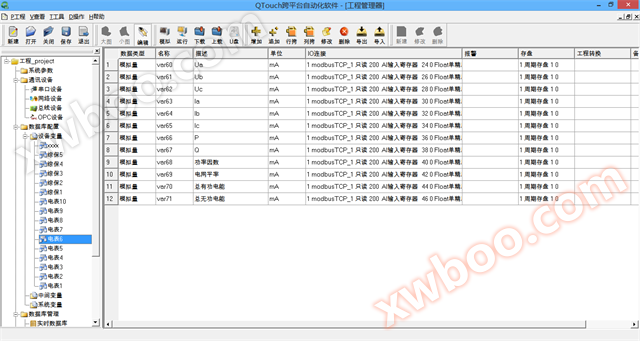 Η ρύθμιση και η διαμόρφωση των μεταβλητών συσκευών επικοινωνίας μέσω του διαχειριστή μηχανικής QTouch διευκολύνουν τη γρήγορη δημιουργία δικτύων επικοινωνίας συσκευών, την πρόσβαση και τη διαχείριση των δεδομένων. Η διεπαφή του συστήματος είναι η ακόλουθη: